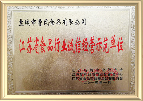 • 江苏省食品行业诚信经营示范单位